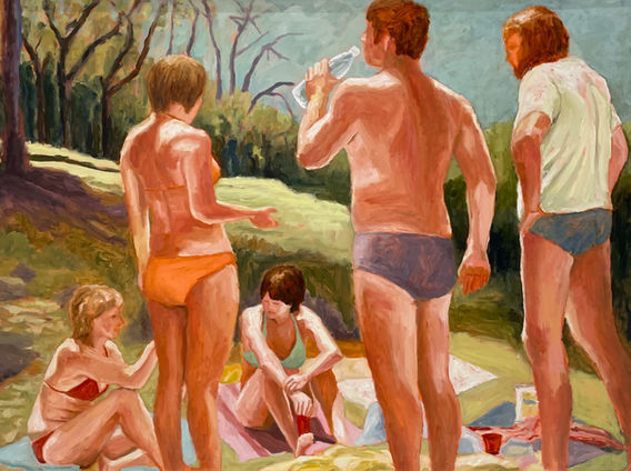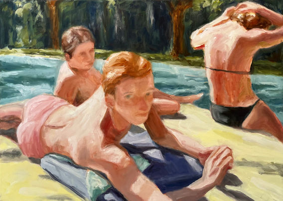 Through the use of light and colour I am interested in the mood a painting can convey. Small stolen moments and the intimate spaces between figures, where emotions can be transferred and heightened through the use of paint and a few expressive marks. The forms and figures often become more abstract and less defined around the edges, the way our memory only presents a soft and distorted retelling of reality.